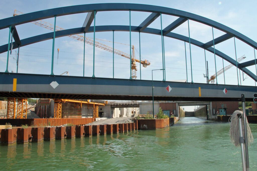 Wir passieren direkt nacheinander die alte Schleuse und die neue Schleuse in Richtung Dortmund