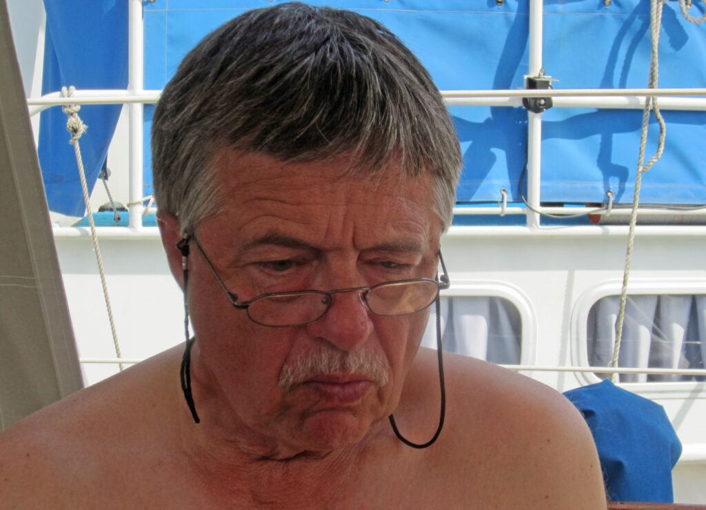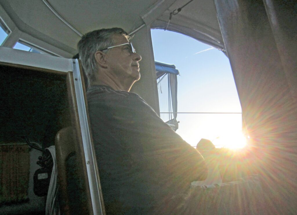 Später saßen wir noch lange im Cockpit und warteten wieder auf Abkühlung. Unter weit geöffneten Luken schläft es sich ganz gut und so hat man einen wunderbaren Platz, um Sternschnuppen zu sehen.