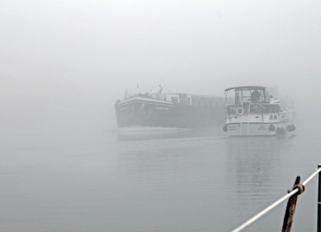 Der Kapitän dieses Berufsschiffes meinte über Funk, er hätte uns „platt gemacht“, wenn wir nicht ausgewichen wären. Na prost Mahlzeit, können wir etwas dafür, dass wir vom Nebel überrascht wurden?