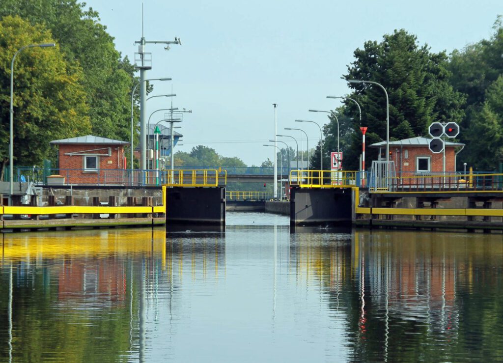 09:20h erreichen wir die Schleuse Drakenburg, hier müssen wir 15 Min. warten und dann geht es weiter. Inzwischen ist wieder strahlender Sonnenschein.