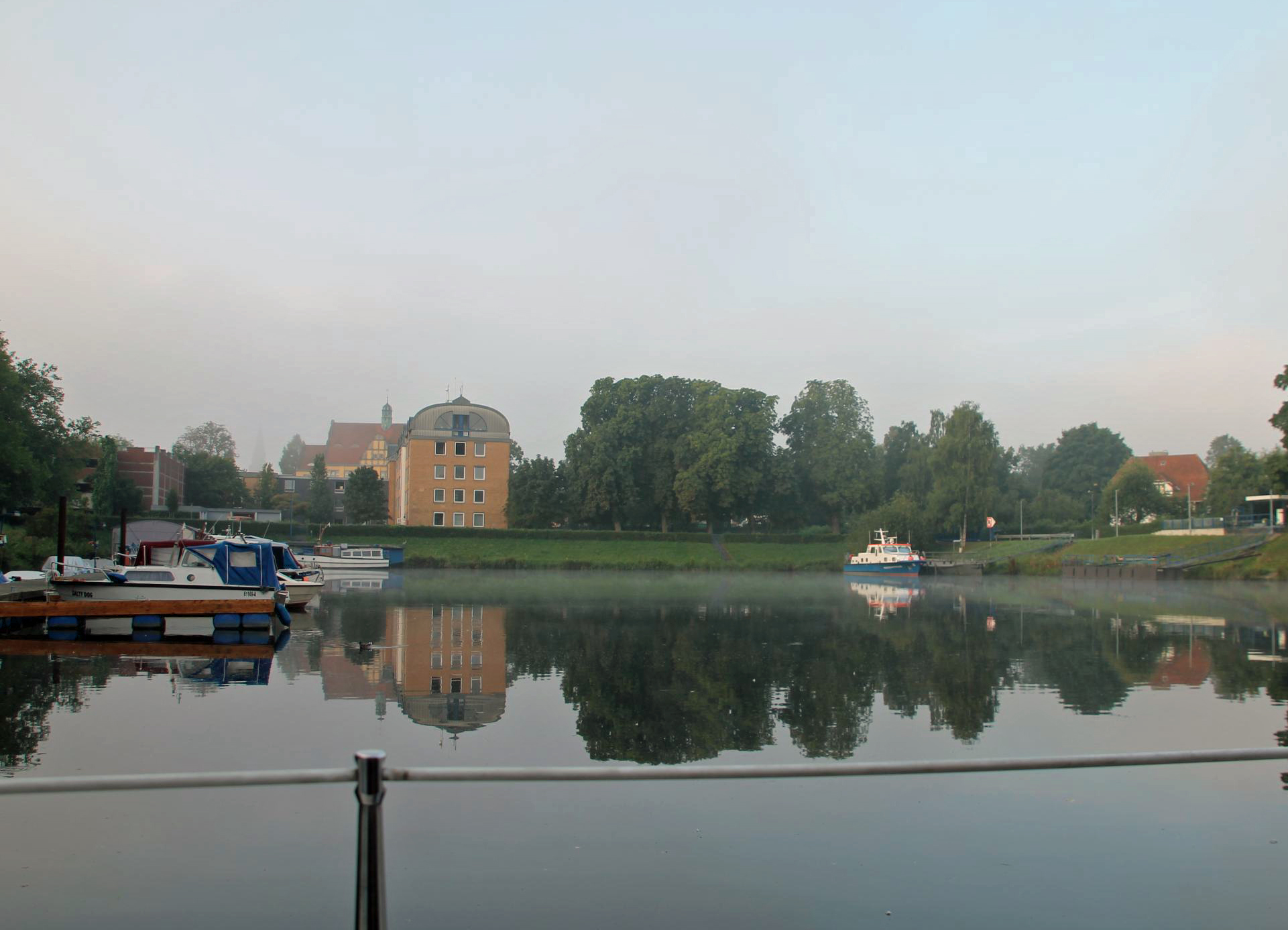 09:20h erreichen wir die Schleuse Drakenburg, hier müssen wir 15 Min. warten und dann geht es weiter. Inzwischen ist wieder strahlender Sonnenschein.