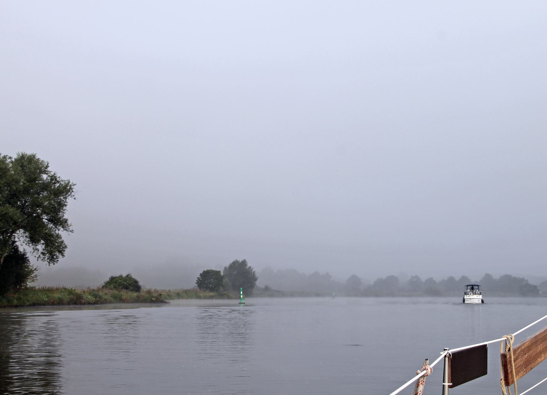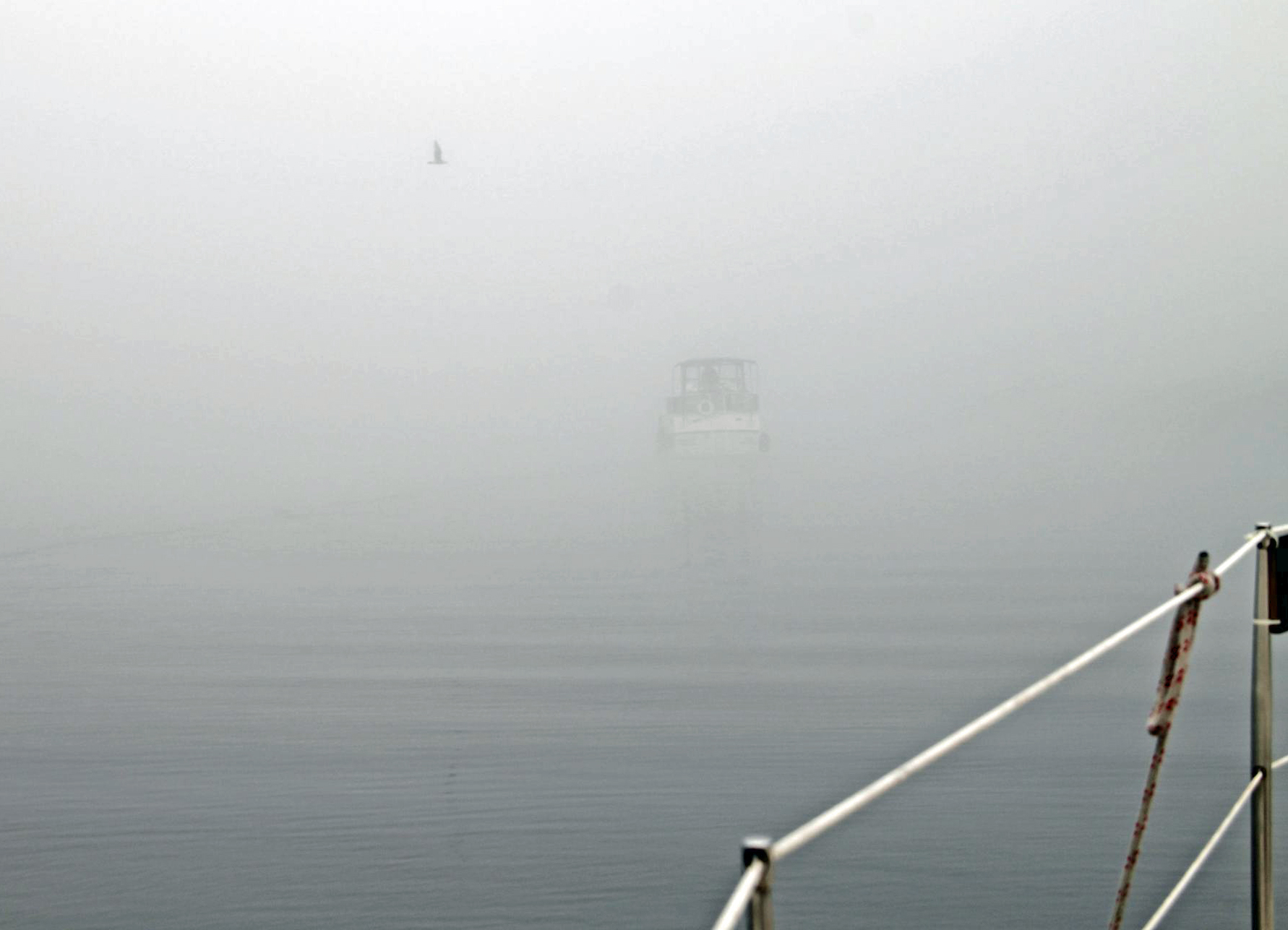 Der Kapitän dieses Berufsschiffes meinte über Funk, er hätte uns „platt gemacht“, wenn wir nicht ausgewichen wären. Na prost Mahlzeit, können wir etwas dafür, dass wir vom Nebel überrascht wurden?