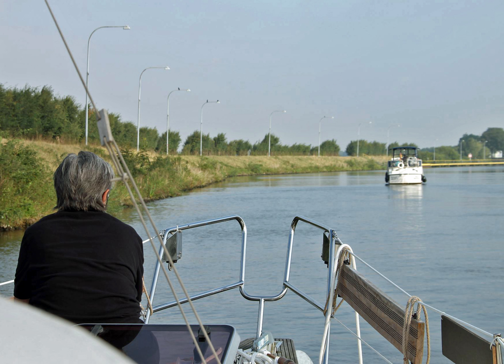 Wolfgang rief noch vom Steuerstand aus: „Mach doch am Poller fest“. – ich zurück: „Da ist nichts zum Festmachen“. – er zurück: “ Mach endlich fest! Da ist doch ein Poller!! “ – „Nein!“ – kam nur von mir zurück – mein lieber Mann musste sich wie fast immer selbst überzeugen