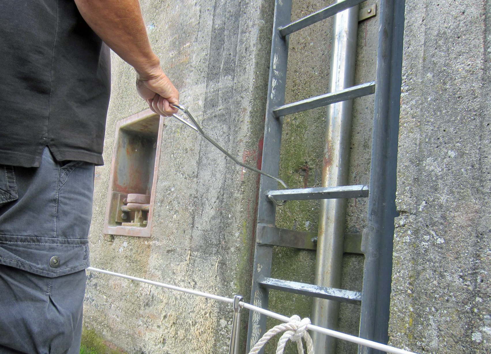 An der Ostseite sind nur Leitern zum Festmachen. Die Poller sind außer Betrieb.