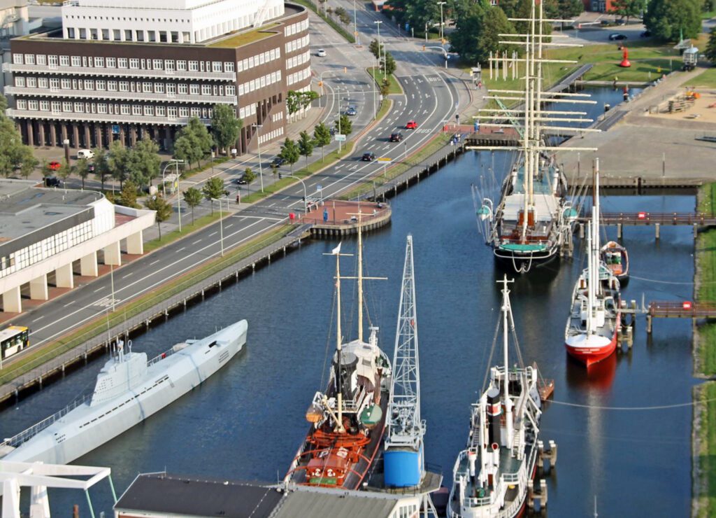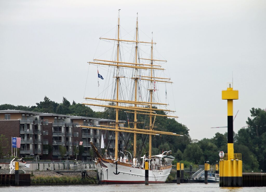 In Vegesack an der Mündung der Lesum liegt das Segelschulschiff „Deutschland„.