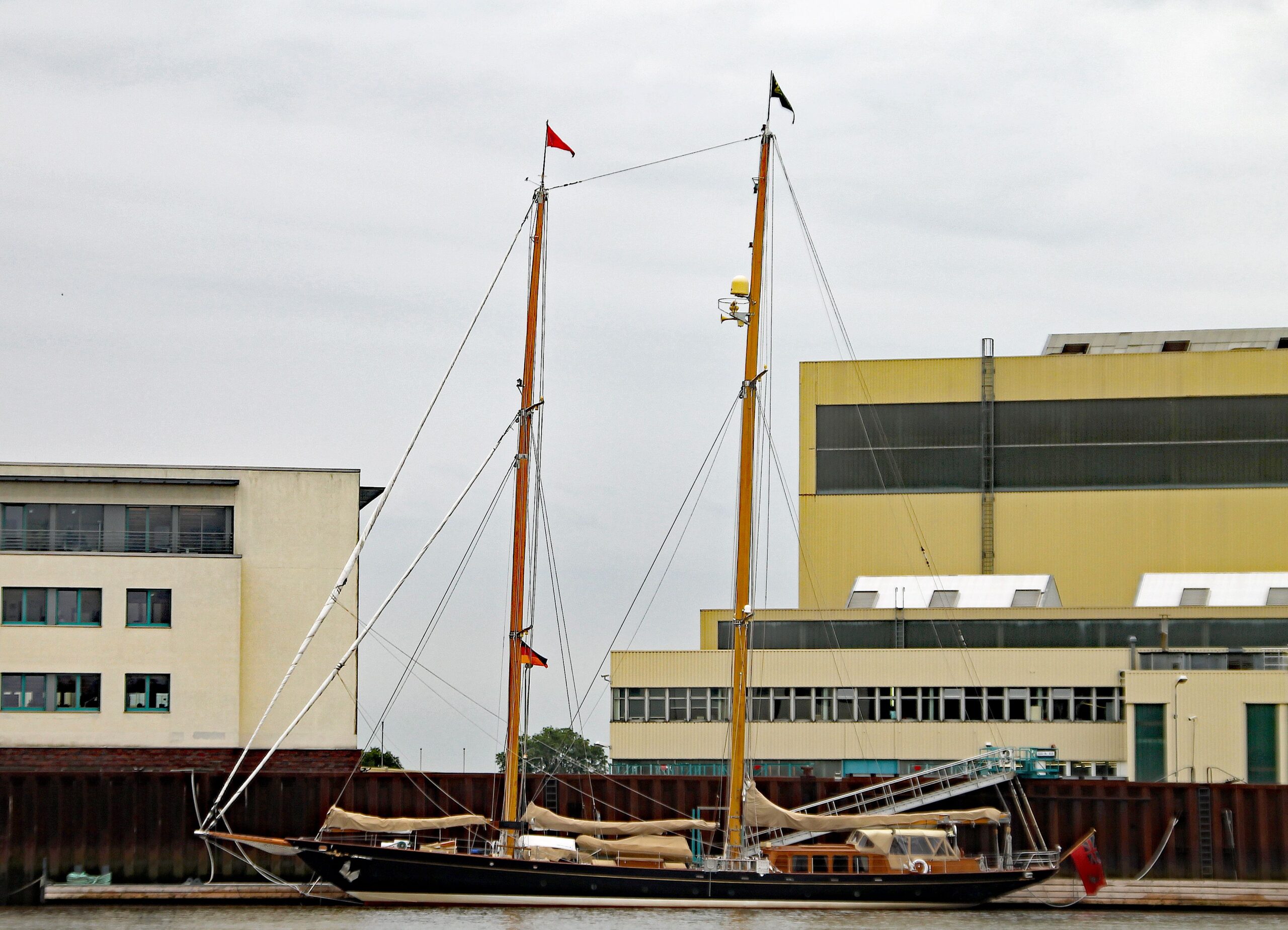 In Vegesack an der Mündung der Lesum liegt das Segelschulschiff „Deutschland„.