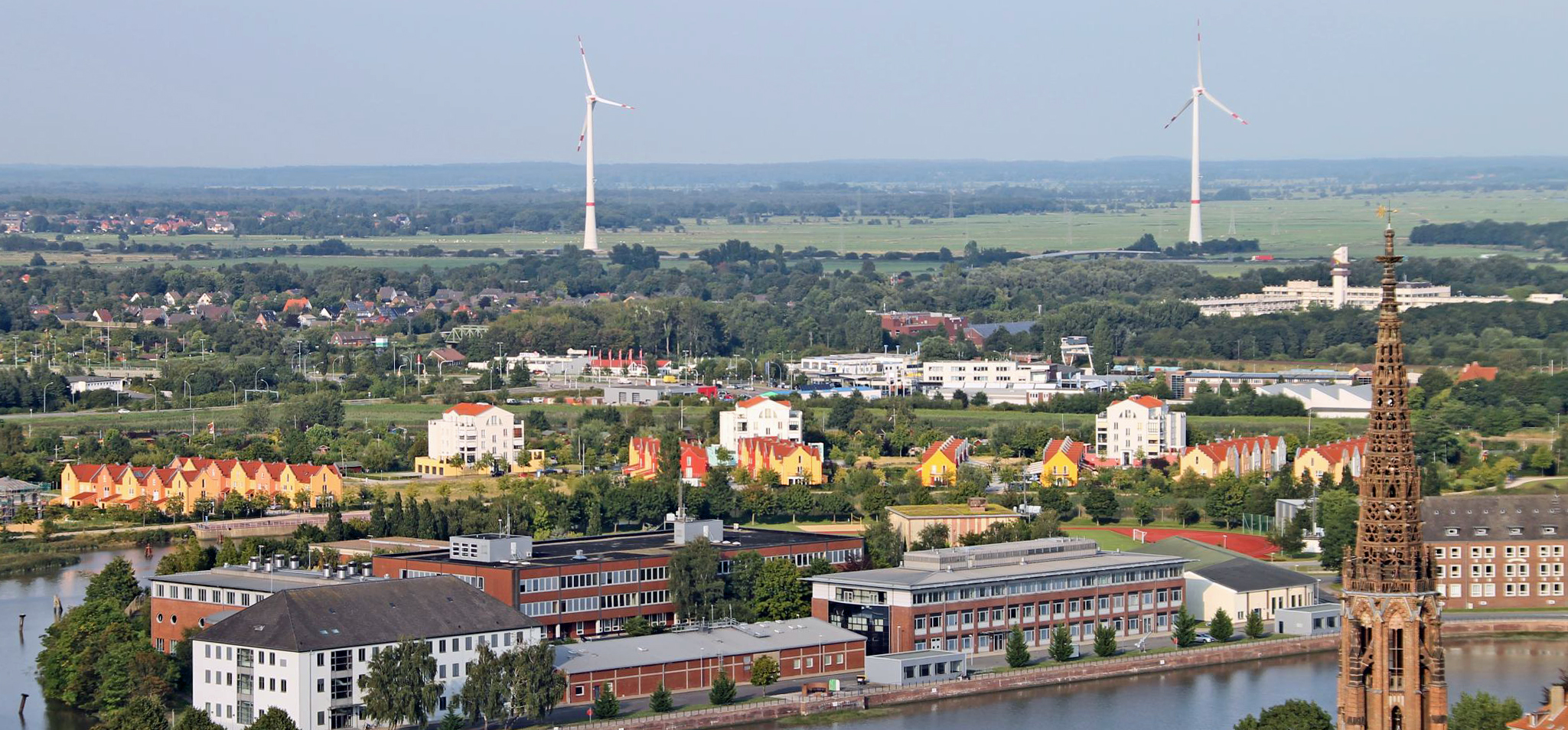 Ein Blick vom „Neuen Hafen“ auf das „Klimahaus„