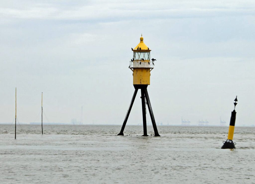 Der Leuchtturm Hohe Weg begleitet uns ein langes Stück.