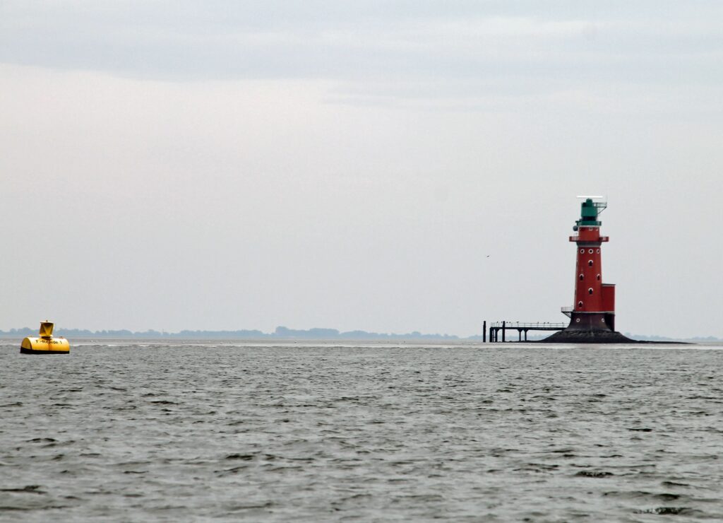 Wir sehen zu, dass wir ganz schnell auf die andere Seite kommen und fahren außerhalb des Fahrwassers an den grünen Tonnen entlang in Richtung Nordsee.