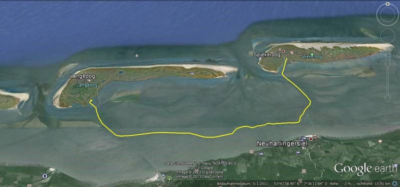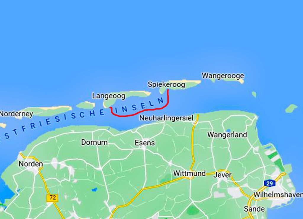 Unsere Route heute: von Spiekeroog nach Langeoog