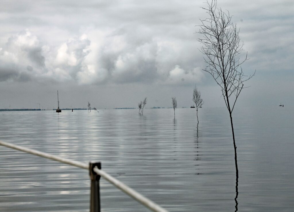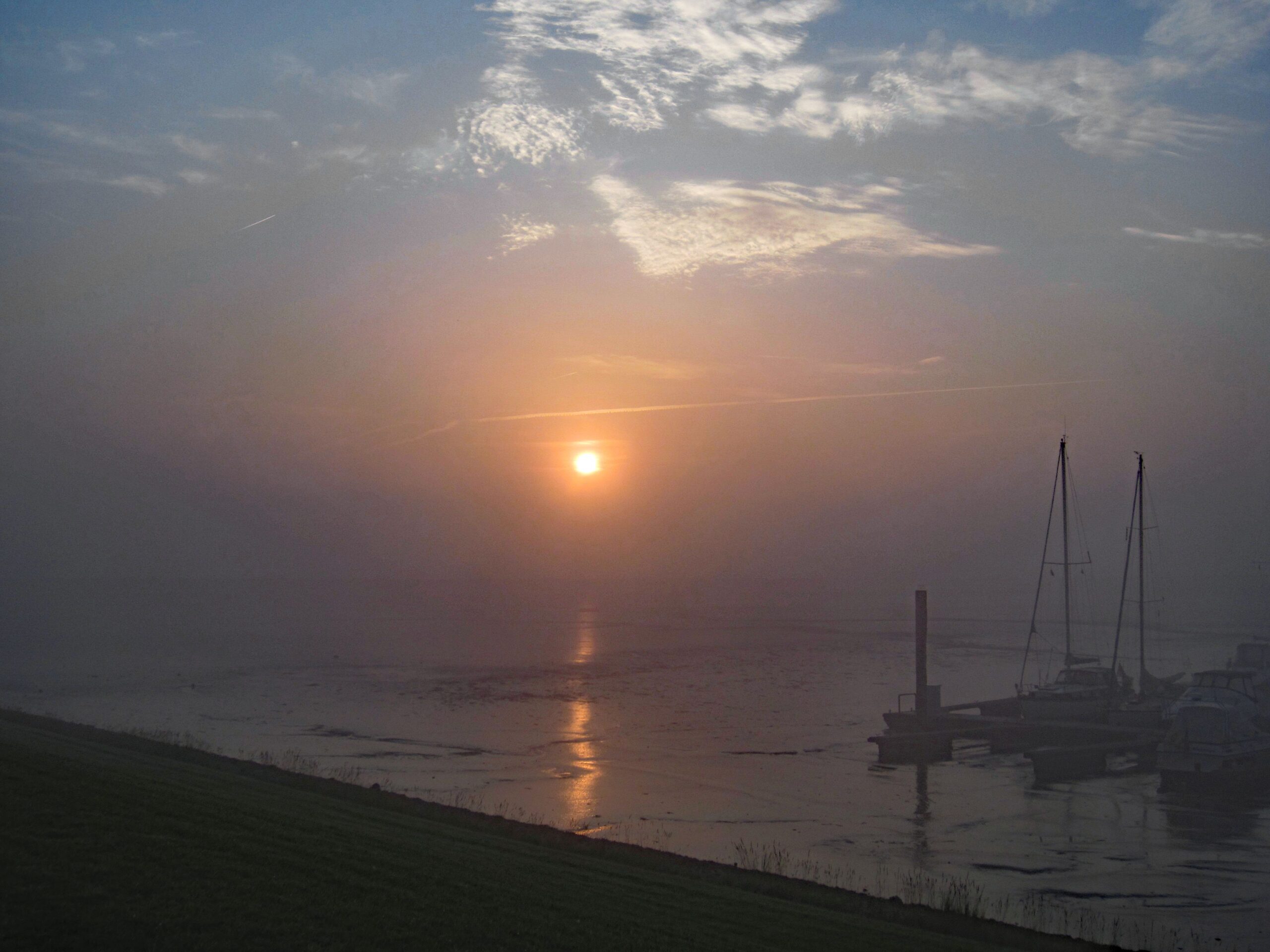 Obwohl kein Wind weht, sieht man doch auf den Sänden der Otzumer Balje die Wellen brechen.