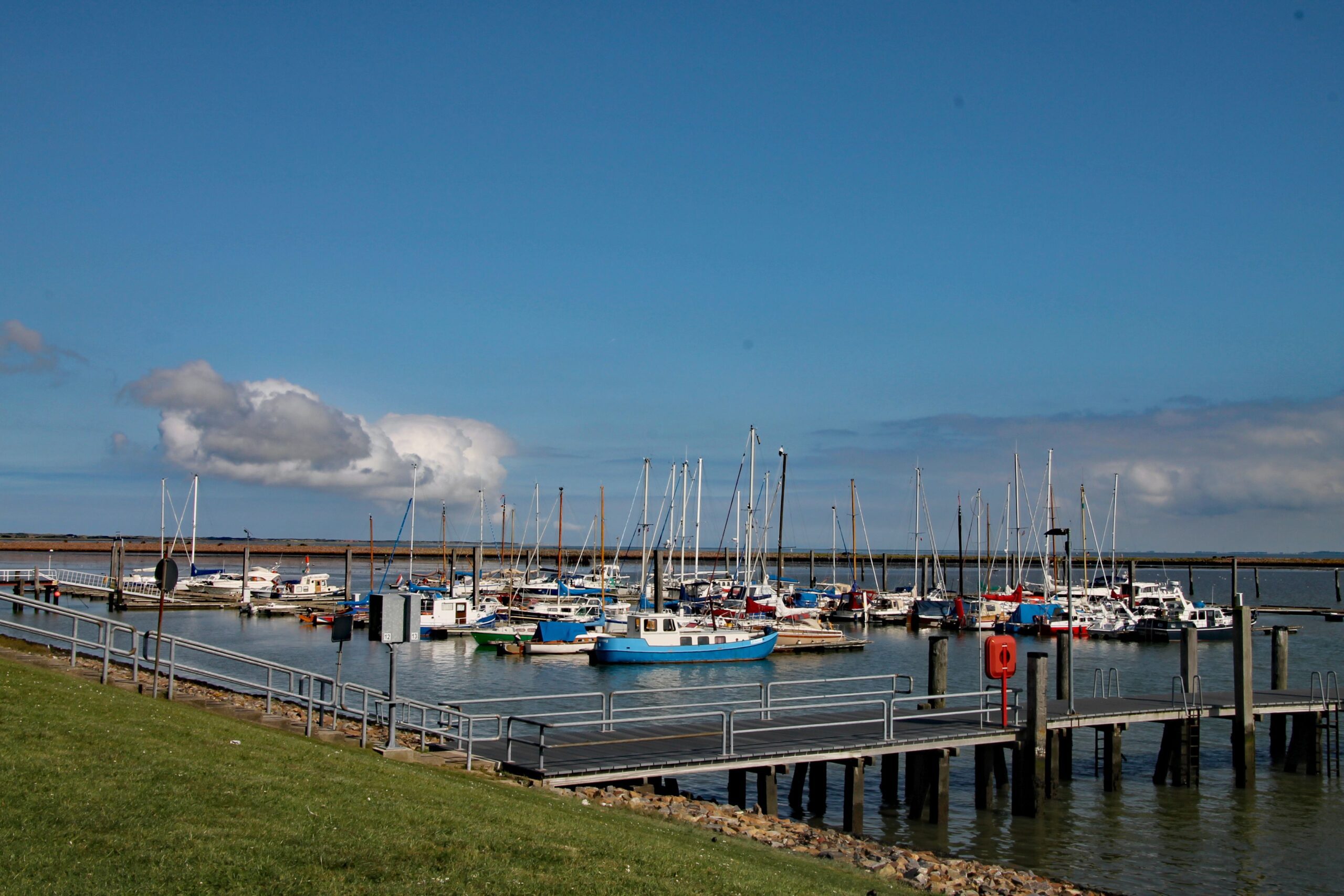 Wir wollen um die Mittagszeit los, zurück nach Spiekeroog, doch als wir kurz hinter der Hafenausfahrt über Funk eine Sturmwarnung für die ostfriesische Küste hören, kehren wir kurzentschlossen wieder um, wir haben ja Zeit und sind nicht auf der Flucht.