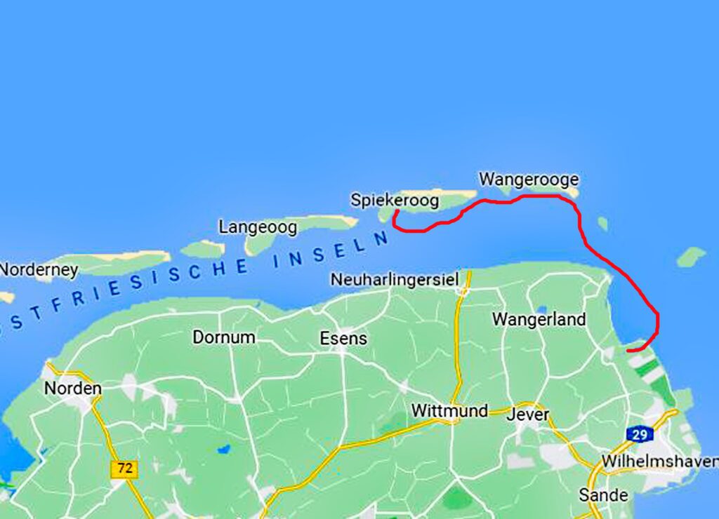 Unsere Route heute: von Spiekeroog nach Hooksiel
