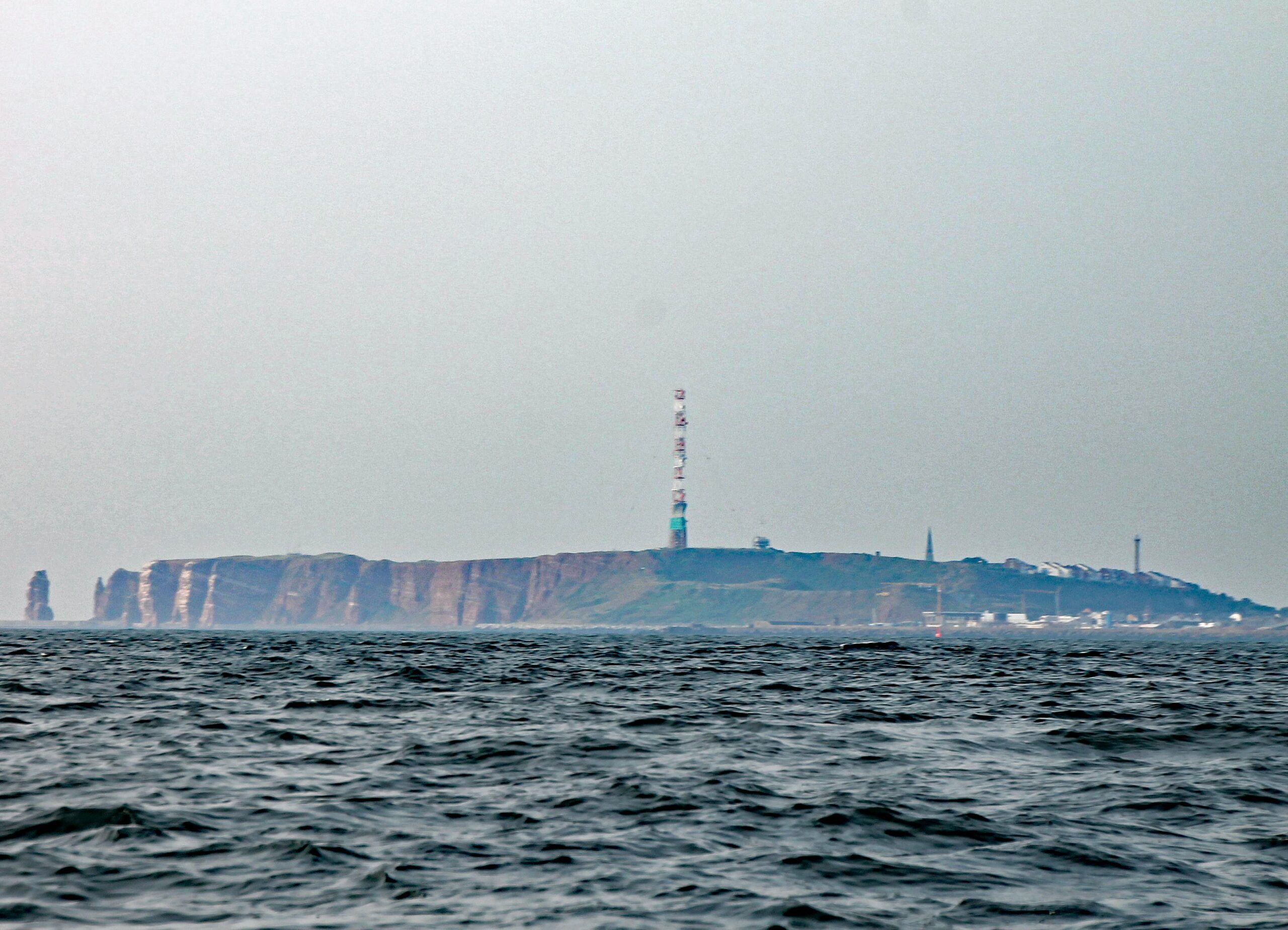 Unser Ziel Helgoland zeigt sich in leichtem Dunst.