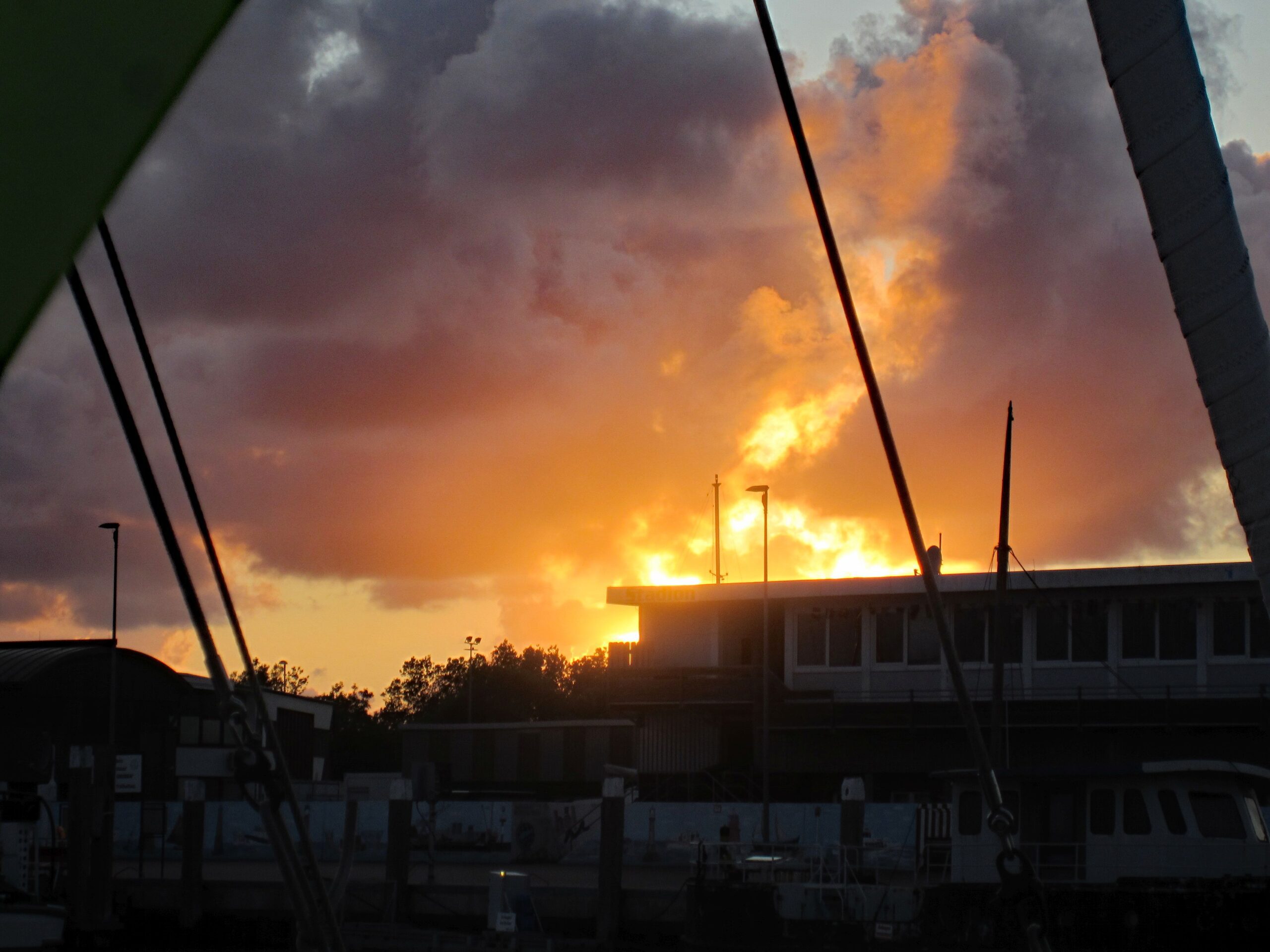 Der Wind nimmt dann am Vormittag weiter zu, so dass auch wieder lange Strecken Bft 6 mit 7er Böen durchgehen. Tagsüber ist Warten auf den Motortechniker angesagt, der natürlich nicht kommt. Versuche, gegen 17:30h bei ihm anzurufen, schlagen fehl, nur die Mailbox geht an. Wolfgang fährt dann an der Werkstatt vorbei und trifft ihn auch noch an. Sie verabreden sich für morgen früh 09:15h. Wir sind gespannt!