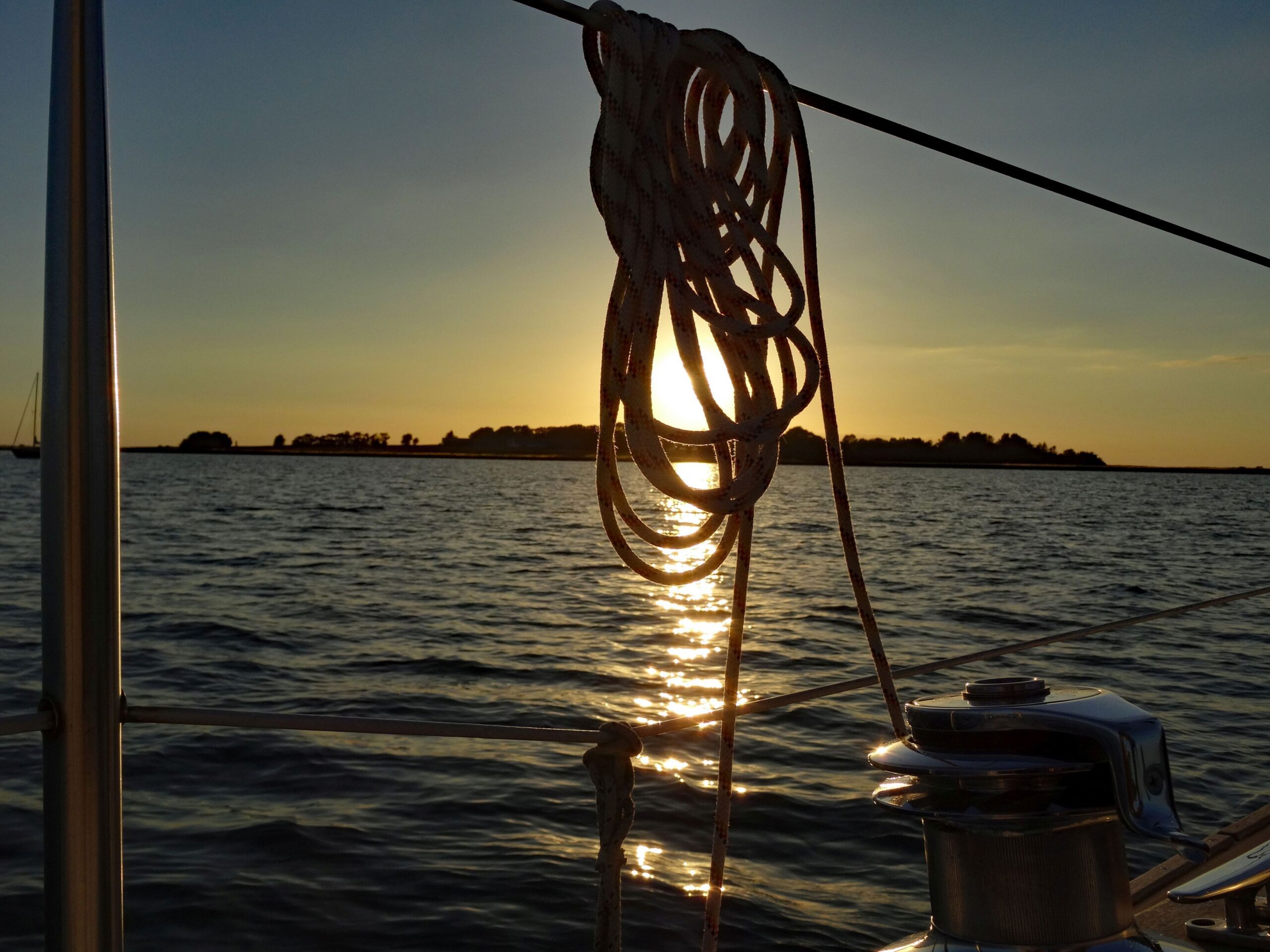 Es ist ein spannendes Gefühl, das erste Mal mit der Double Fun über Nacht vor Anker zu gehen. Während der Abendstunden hat der Wind einmal um 360° gedreht und mit ihm unsere Lady. Der Anker hat wunderbar gehalten, obwohl der Wind zwischendurch auf 4 Bft. aufbrauste
