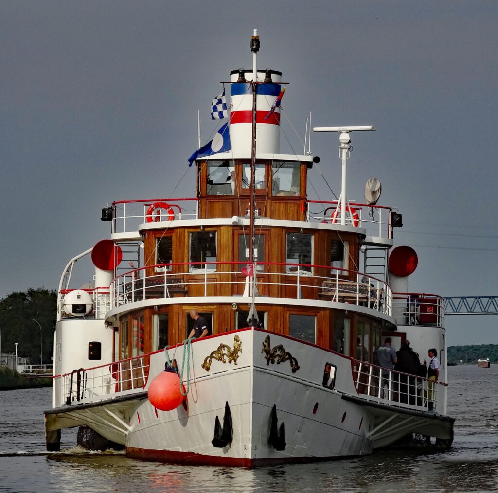 die Freya legt auch in Brunsbüttel an und macht mit lauten Seemannsklängen auf sich aufmerksam