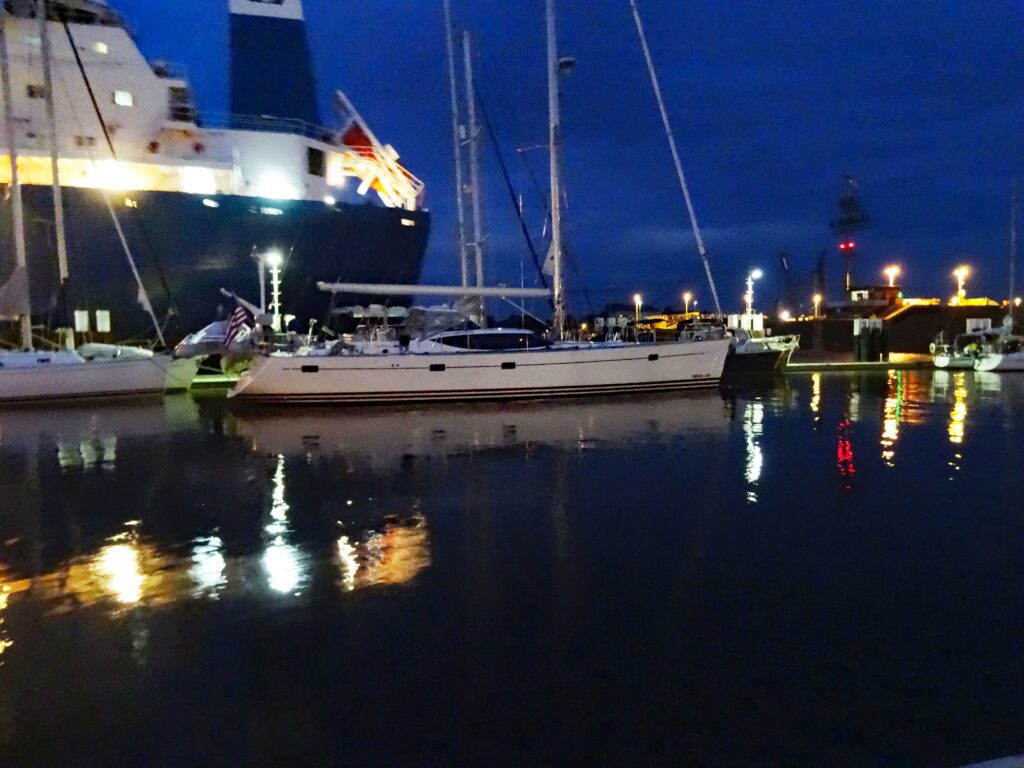 Gegen Mitternacht erreichen wir den Außenhafen von Hooksiel und machen dann an der „Jens Albrecht“ fest.
