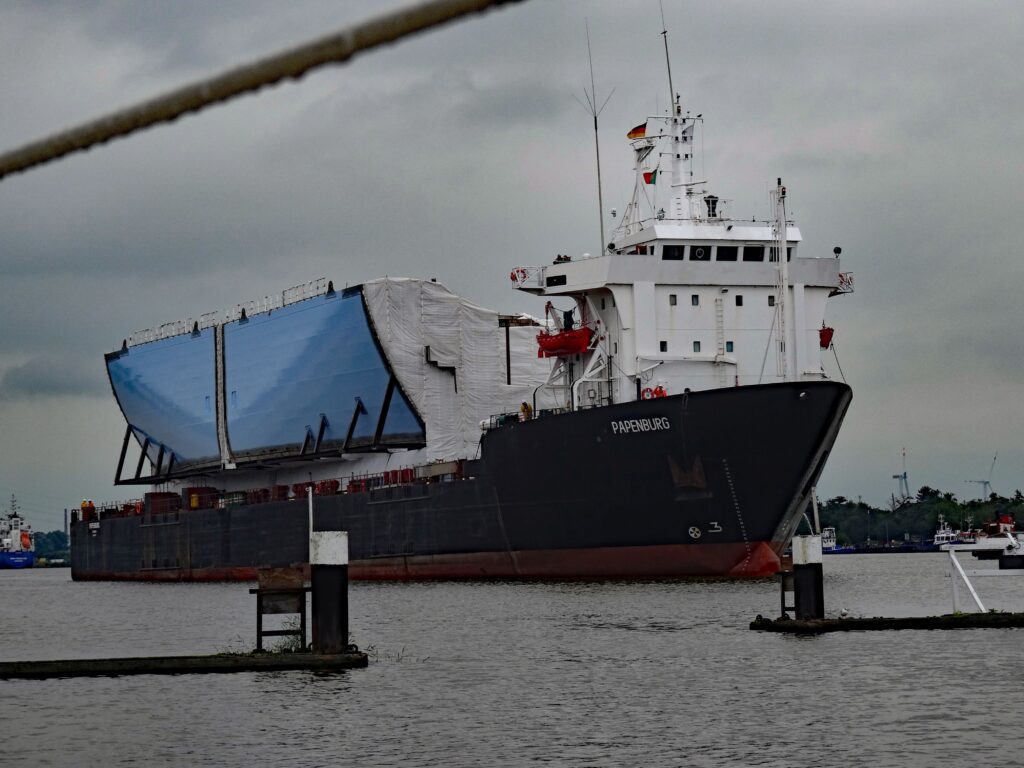 In der Schleuse mit Ziel Papenburg – ein Teil eines neuen Ozeanriesen