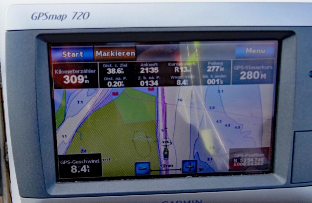 Gegen 14:00 laufen wir aus dem SVC aus. Kurs: außerhalb der grünen Seite des Elbfahrwassers geht es Richtung Tonne Elbe 1