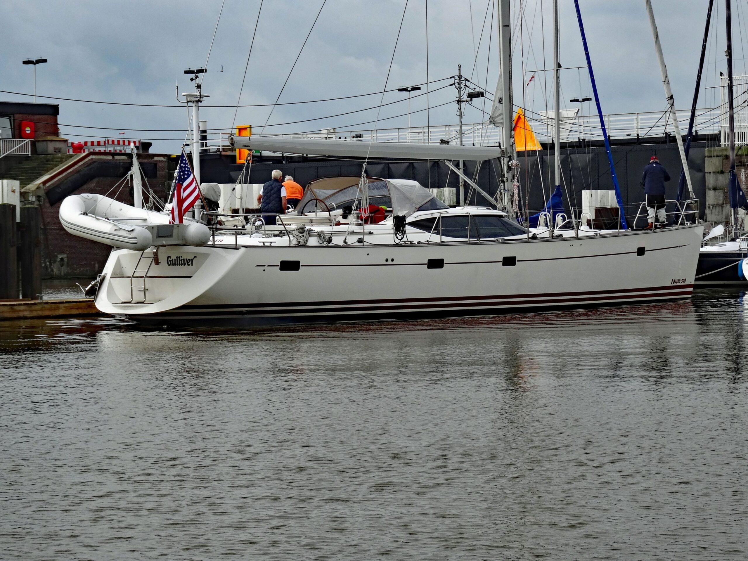 Am Abend gab es noch etwas sehr Sehenswertes: Eine Najad 570 mit dem Namen Gulliver unter amerikanischer Flagge legt in Brunsbüttel an.