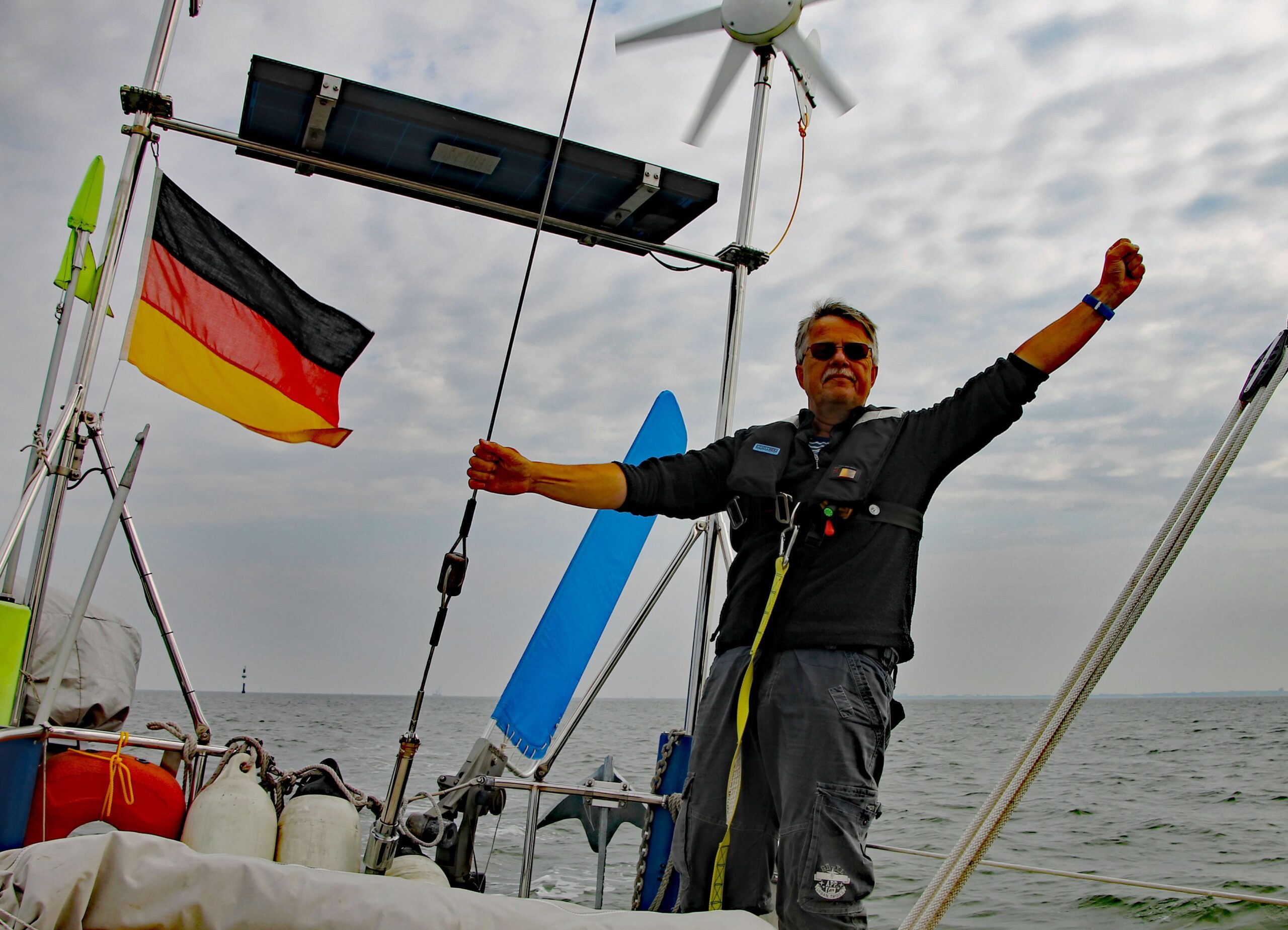 Aber toll war das Segeln mit der Windfahne. Sie steuert sehr zuverlässig und die Problematik mit einer evtl. Kollision mit dem Geräteträger auf bestimmten Kursen ist zu vernachlässigen.