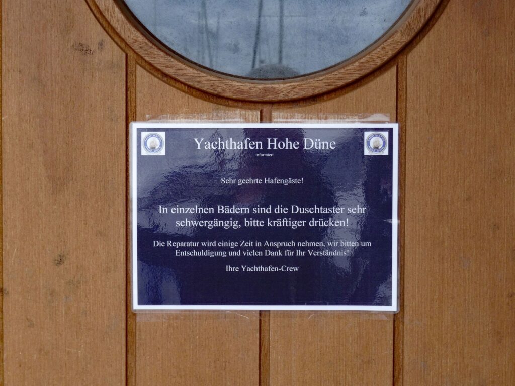 Das Waschhaus ist ca. 100 m entfernt und kann nur mit Code betreten werden. Coins für die Duschen gibt es beim Hafenmeister. Sie sind ok.