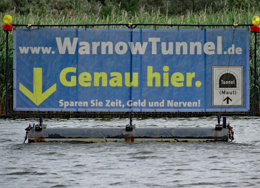 Hier überqueren wir genau den Warnowtunnel.