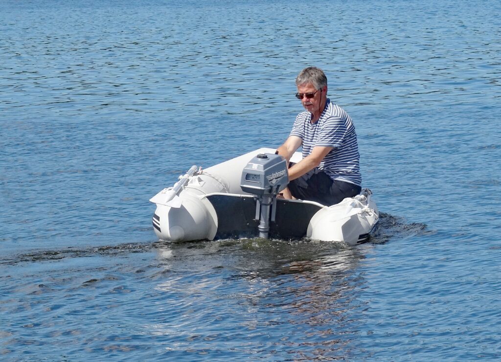 Am Nachmittag probierte Wolfgang wieder mal nach langer Zeit unseren Außenborder und drehte ein paar Runden im Hafen.