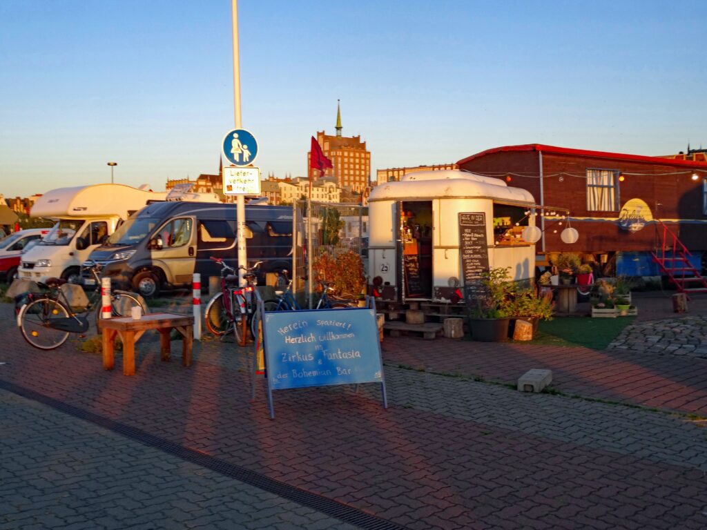In Warnemünde selbst herrscht Trubel. Menschenmassen teilweise wie auf der Drosselgasse. Alles ist hier auf Touris ausgelegt. Einfach furchtbar für uns.
