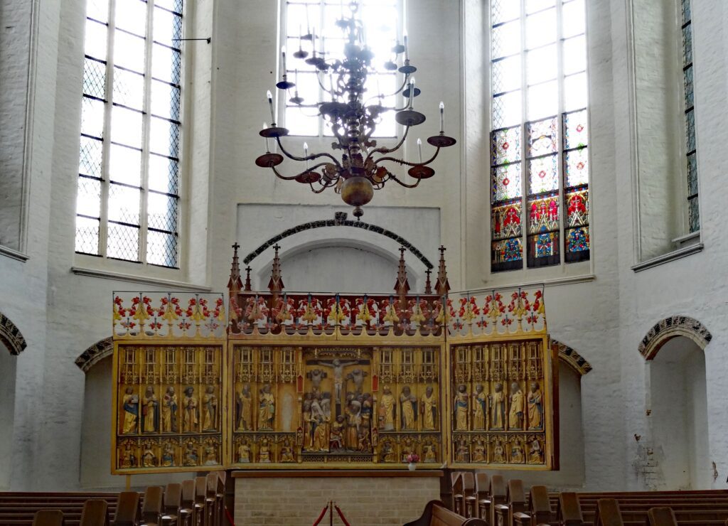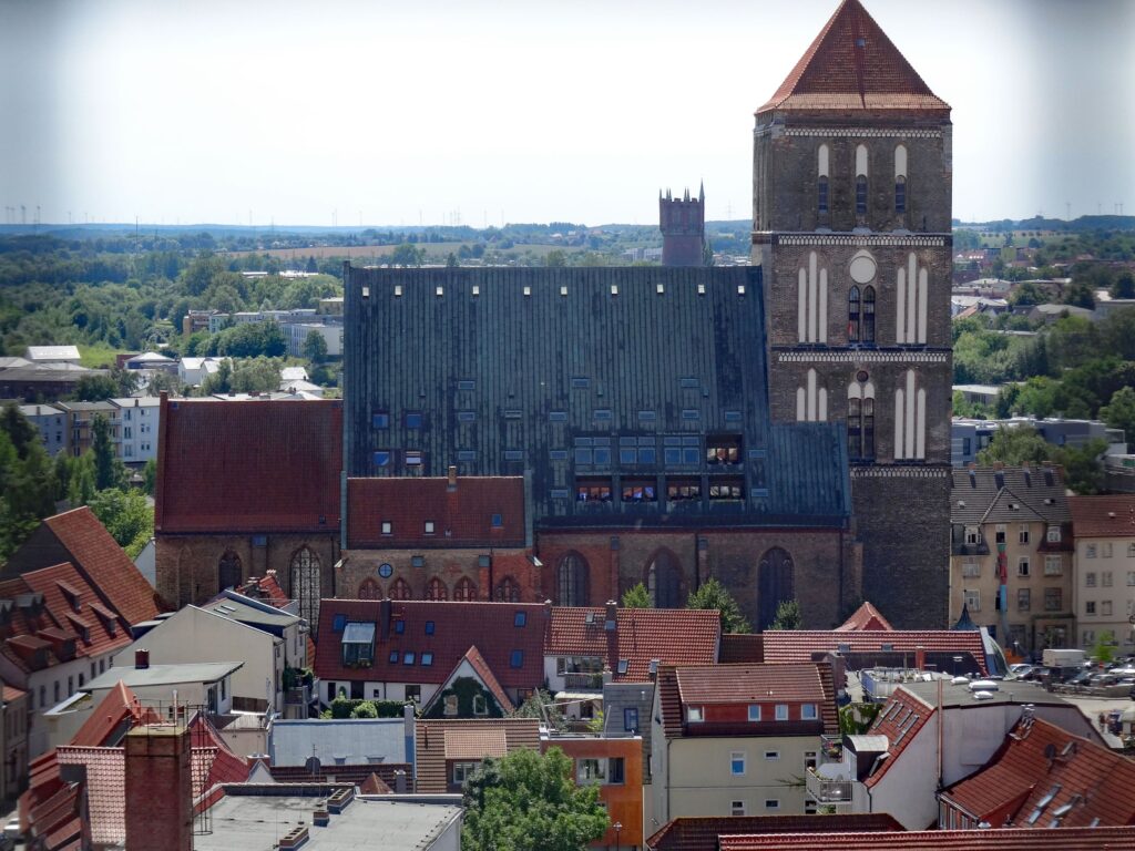 Von dort oben haben wir den Blick zur St. Nikolai Kirche aus dem 13. Jahrhundert