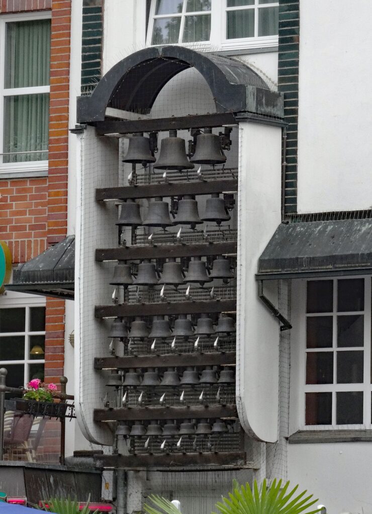 das Glockenspiel Fünfgiebelhaus mit 32 Glocken und einem Gesamtgewicht von 533 kg.