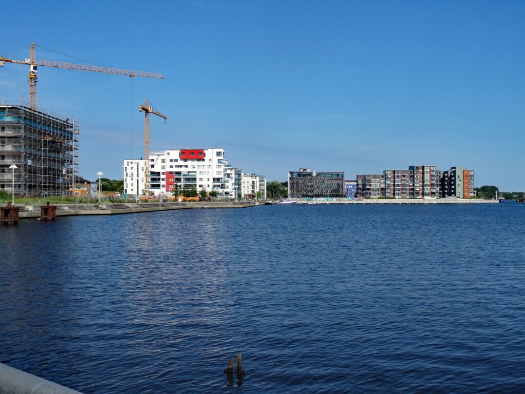Dann fahren wir ein Stück am Wasser entlang. Hier wird gebaut, was das Zeugs hält, sicher kein sozialer Wohnungsbau.