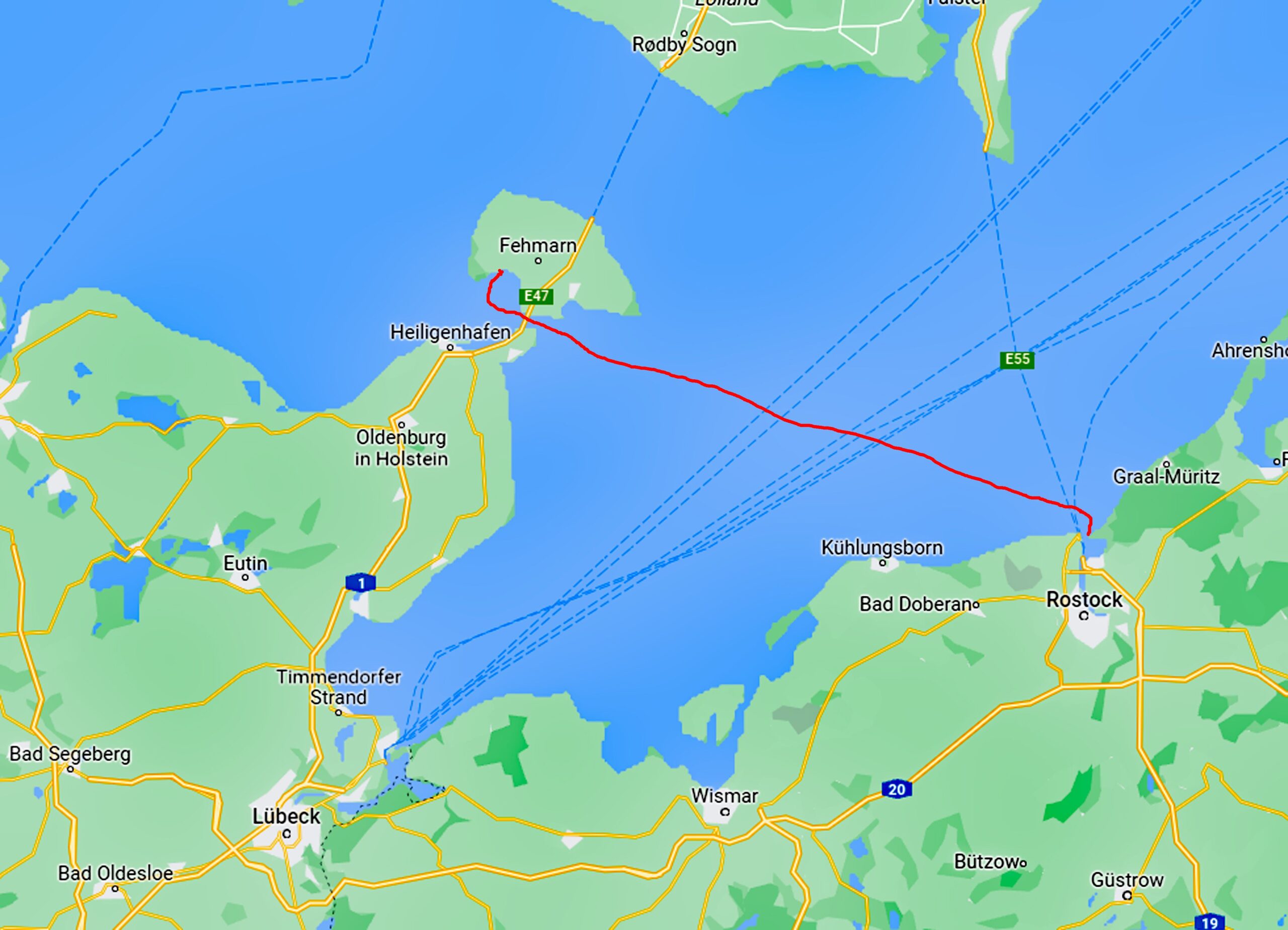 Unsere Route heute: von Rostock nach Gedser