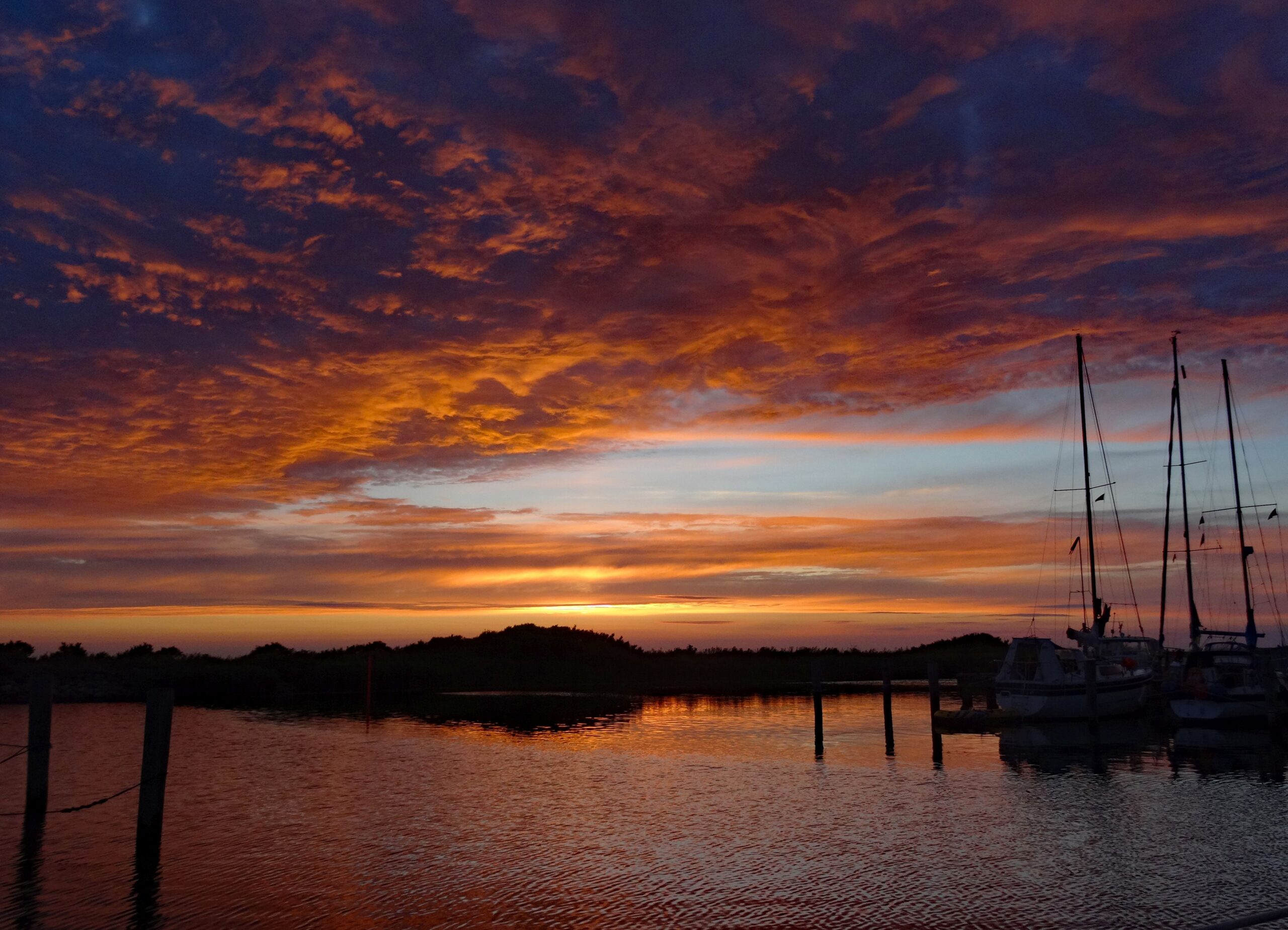 Am Nachmittag gibt es nur einen kurzen Sprühregen für heute und ansonsten nur Sonne. Wir können nach leckeren Bandnudeln mit Lachs bis gegen 22:00h draußen sitzen und dem Sonnenuntergang zusehen.