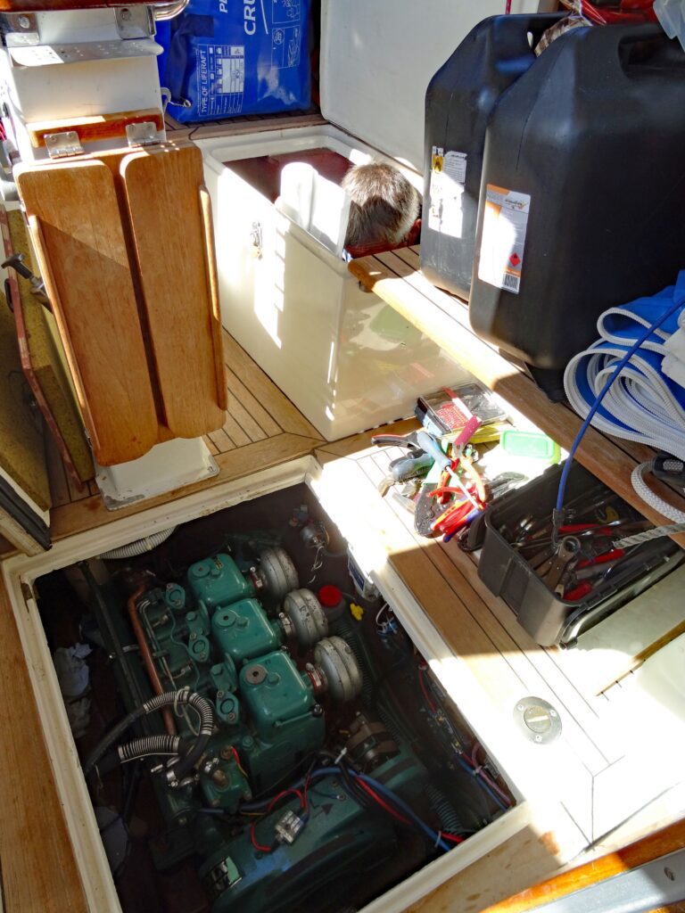 Danach muss er nach diesen Verrenkungen erst einmal schwimmen gehen. Aber mit dem Ziel, das Kraut vom Ankern von der Logge zu entfernen. Denn sie zeigte auch nicht mehr genau an. Zum Abschluss ruft eine warme Dusche auf der Heckplattform. Trinkwasser muss auch noch gebunkert werden, Aber dann ist wieder Urlaub.