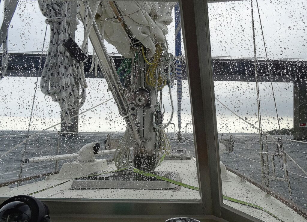 setzt ein heftiger Regenschauer ein mit Böen von 35 Kn. Der Regen kommt fast waagerecht von vorn, so dass das Cockpit kaum nass wird.