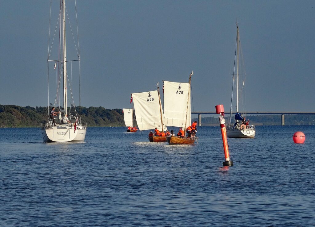 Die Ansteuerung durch den Fægestrøm in Richtung Vordingborg ist dann etwas spannend, weil die Tonnen auf dem Wasser nicht mit den Tonnen auf der Karte übereinstimmen. Zu allem Überfluss zeigt der Plotter noch eine 3. Version an. Außerdem ist hier wohl Jugendregatta.
