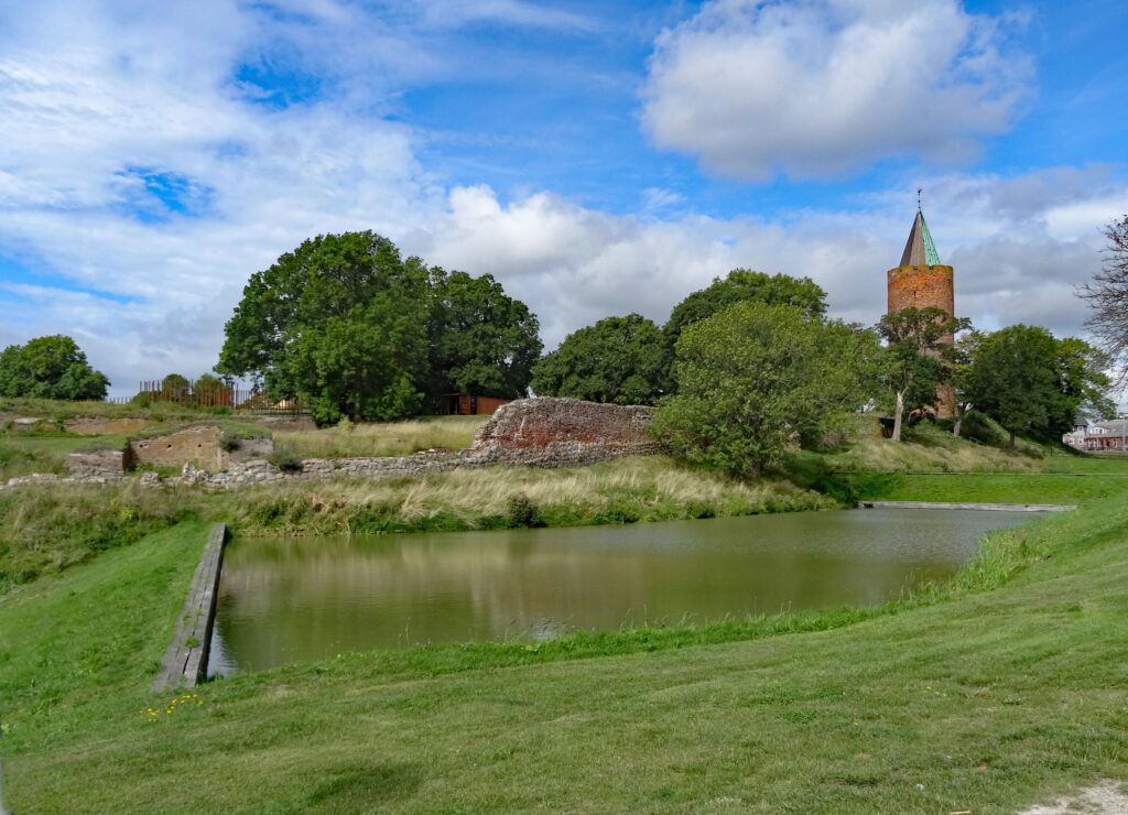 Auf dem Weg zur Stadt sehen wir schon die Burgruine mit teilweise noch vorhandenen Wassergräben. Es sind Reste der größten mittelalterlichen Burg Dänemarks. Erbaut wurde sie Anfang des 12. Jahrhunderts.