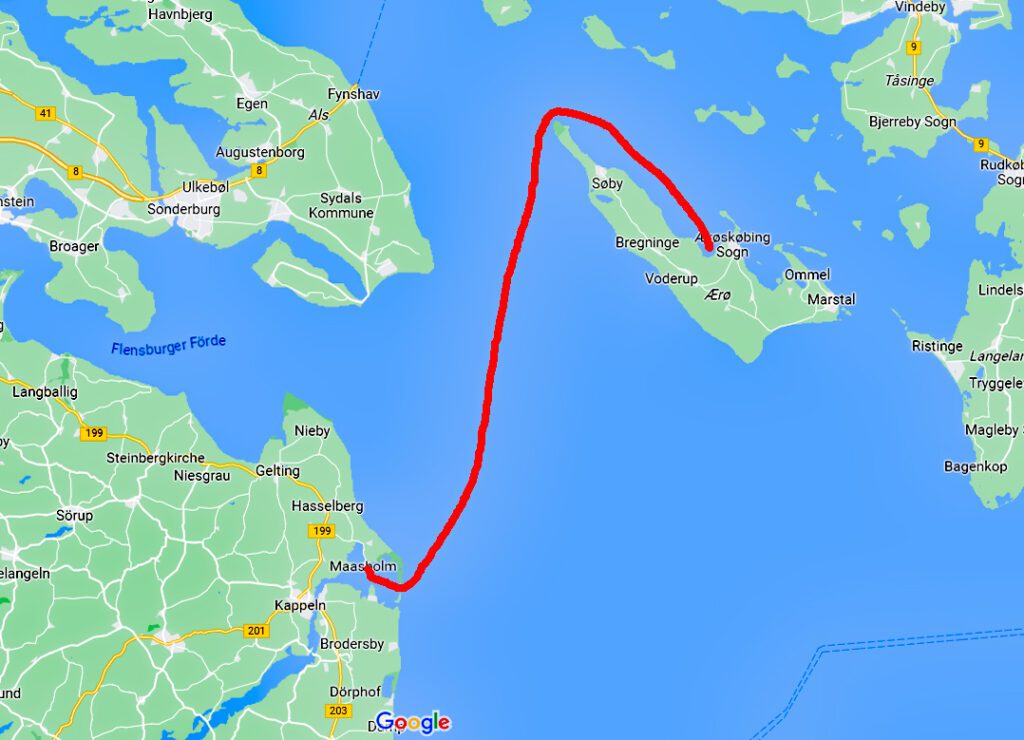 13.09.2016 – Dienstag: Unsere Route heute: Aerø Bucht ⇒ Maasholm