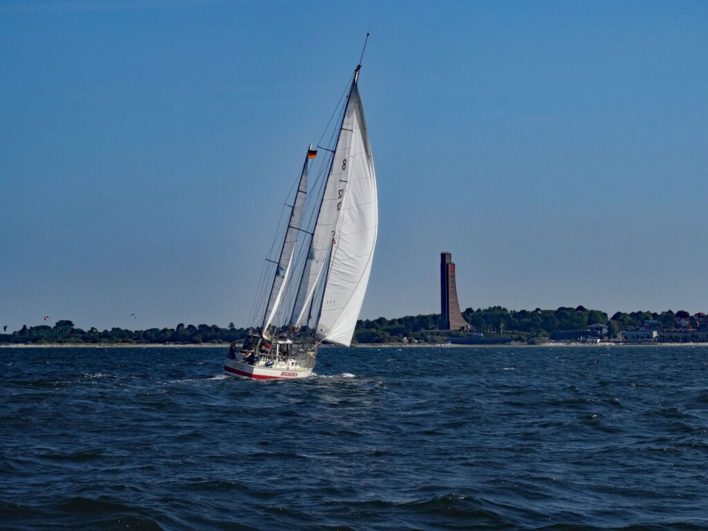 So fahren wir gegen 09:00h aus Maasholm los. Schön brav im Fahrwasser nach Schleimünde. Bei dem östlichen Wind mit ca. 4 Bft. Steht eine ordentliche Welle in der Einfahrt und wir tauchen einige Male voll mit dem Bug ein.