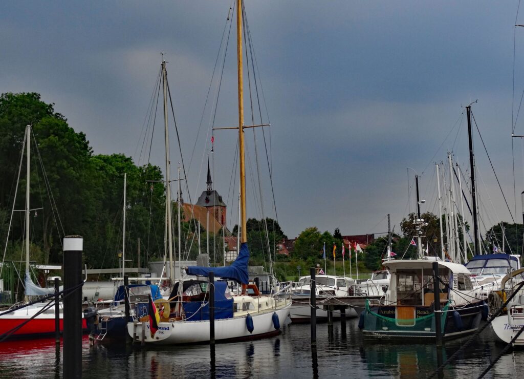 Gut eine halbe Stunde später liegen wir fest in Maasholm fest in der Box 32, die jedoch etwas klein für uns ist.