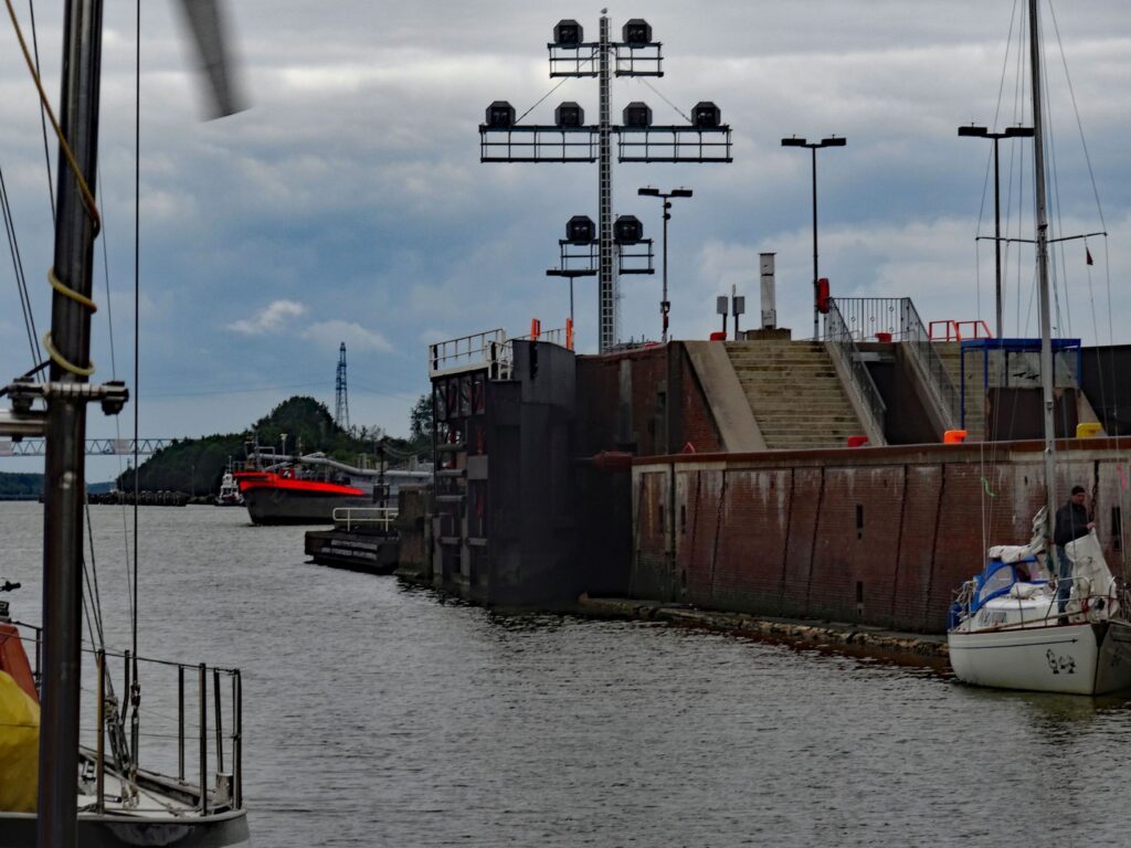 Wir lichten gegen 09:00h den Anker und fahren rüber zur Schleuse Kiel, wo wir noch gut 1 Std. warten müssen.