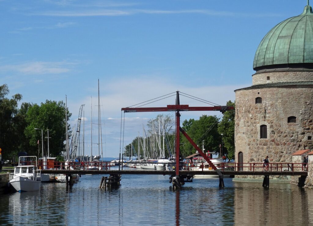Die Stadt ist eigentlich nichtssagend, eine mittelalterliche Brücke über den Motola ström.