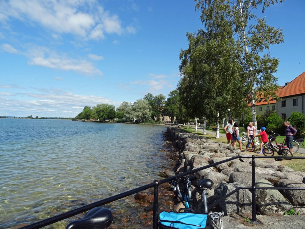 Wir fahren am Nachmittag mit den Rädern durch Vadstena. Das Schloss und auch die Stadt sind sehr schön, da hätten wir uns Karlsborg gut sparen können. Sehr schöne Einkaufsstraße mit alten Häusern und schöne Gassen. In der unmittelbaren Nähe des Hafens ein Coop.