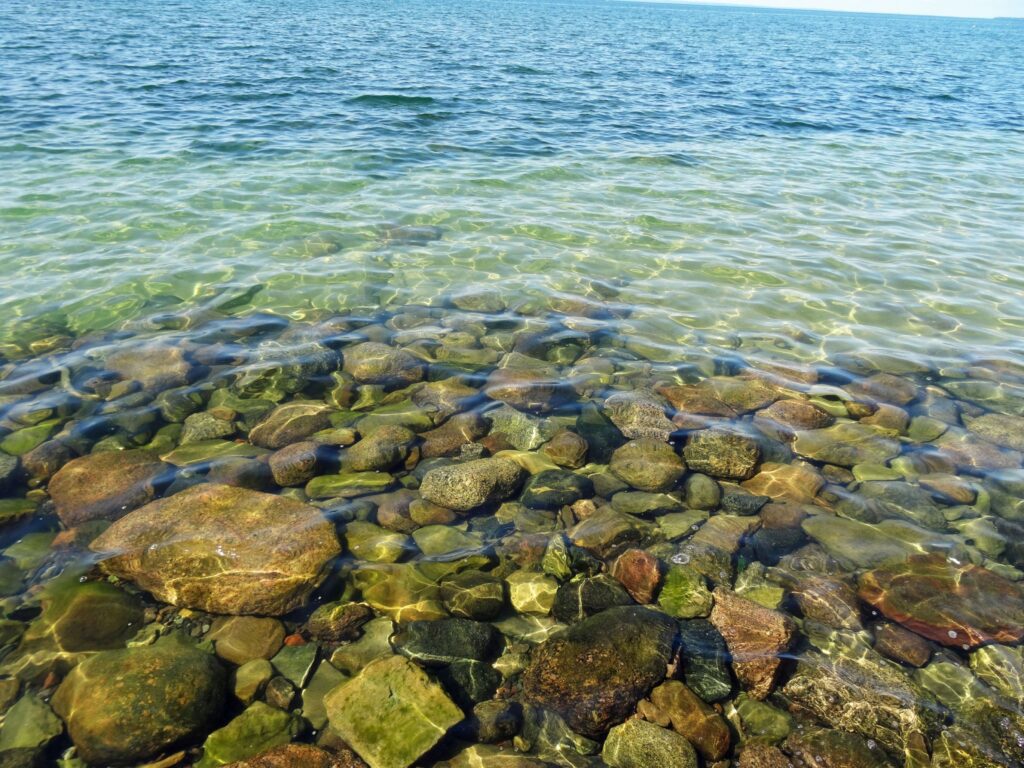 O-Ton Wolfgang: Duschen auf der Badeplattform, Eintauchen in angenehm warmes Vätternwasser. Die Sache mit der Außendusche ist sehr gut, kann aber noch perfektioniert werden.