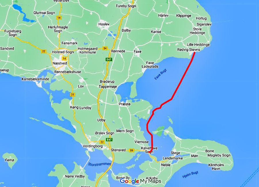 11.09.2019 – Mittwoch: Unsere Route heute: Rødvig ⇒ Kalvehave