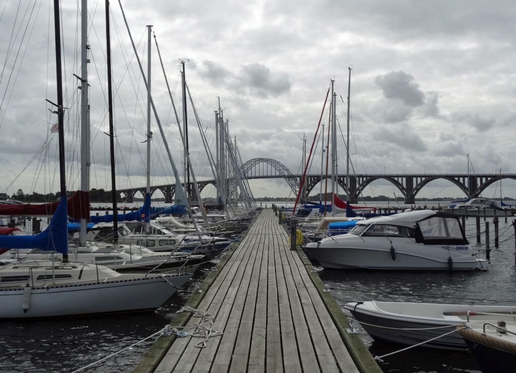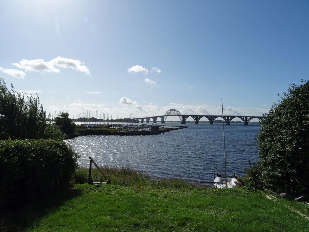 Ein weiter Blick von hier oben auf die „Dronning Alexandrines Bro„. Sie heißt auch Mønbroen oder Ulvsundbroen.