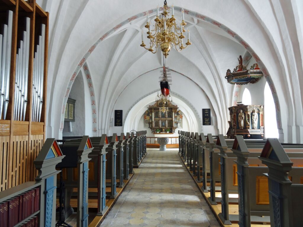 dann ein ganzes Stück am Wasser entlang und sehe in der Ferne die kleine Kirche. Ich ging immer weiter und es zog sich ganz schön bis dorthin. Da hatten die Leute früher einen ganz schönen Fußmarsch zum Gottesdienst.