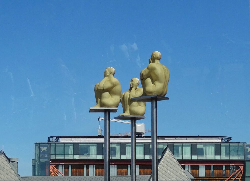Bronze-Skulptur «Skärgårdsfiskare» (Schärenfischer) vor der Fischhalle